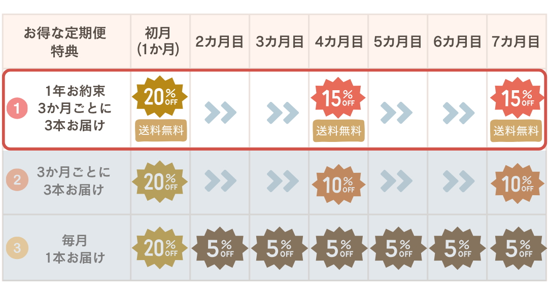 ・お届け:3か月ごとに3本(1年=全4回)