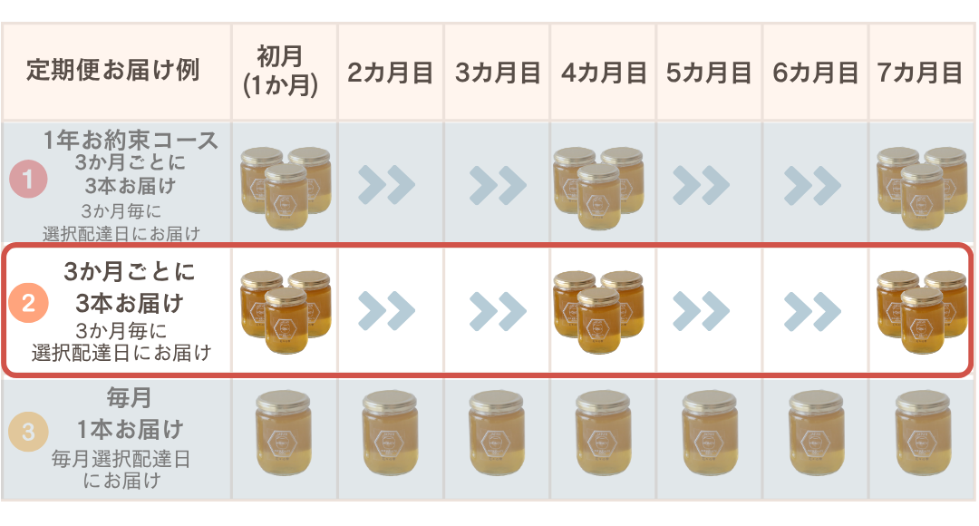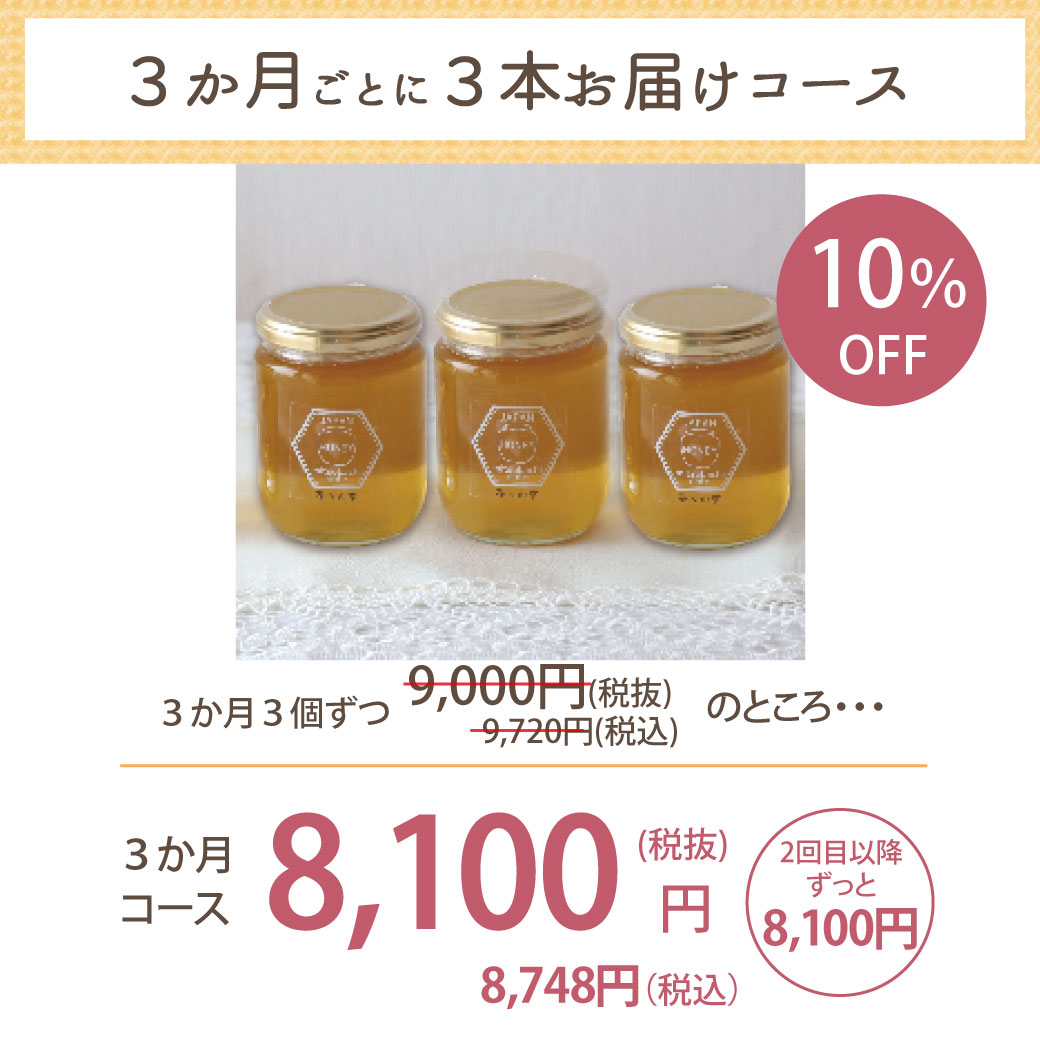 3か月ごとに、3本ハチミツをお届けします。