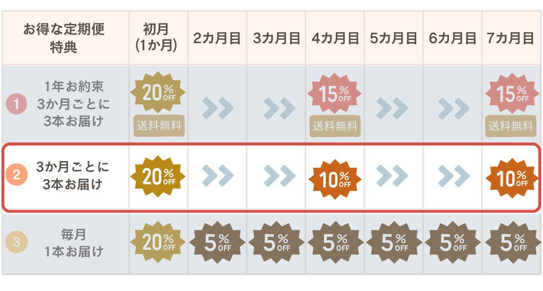 ※『毎月お届けコース』『3か月に3本お届けコース』は本体価格+送料が別途でかかります。