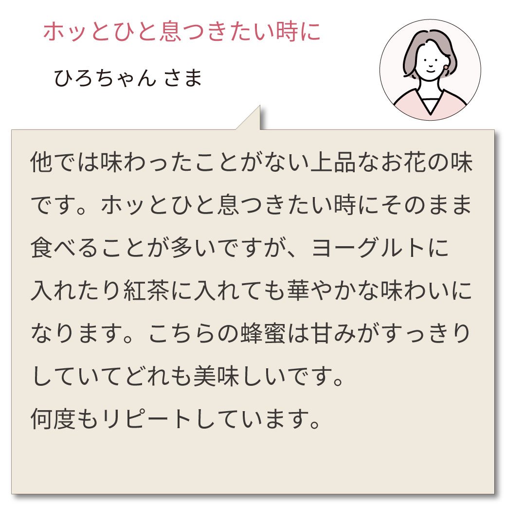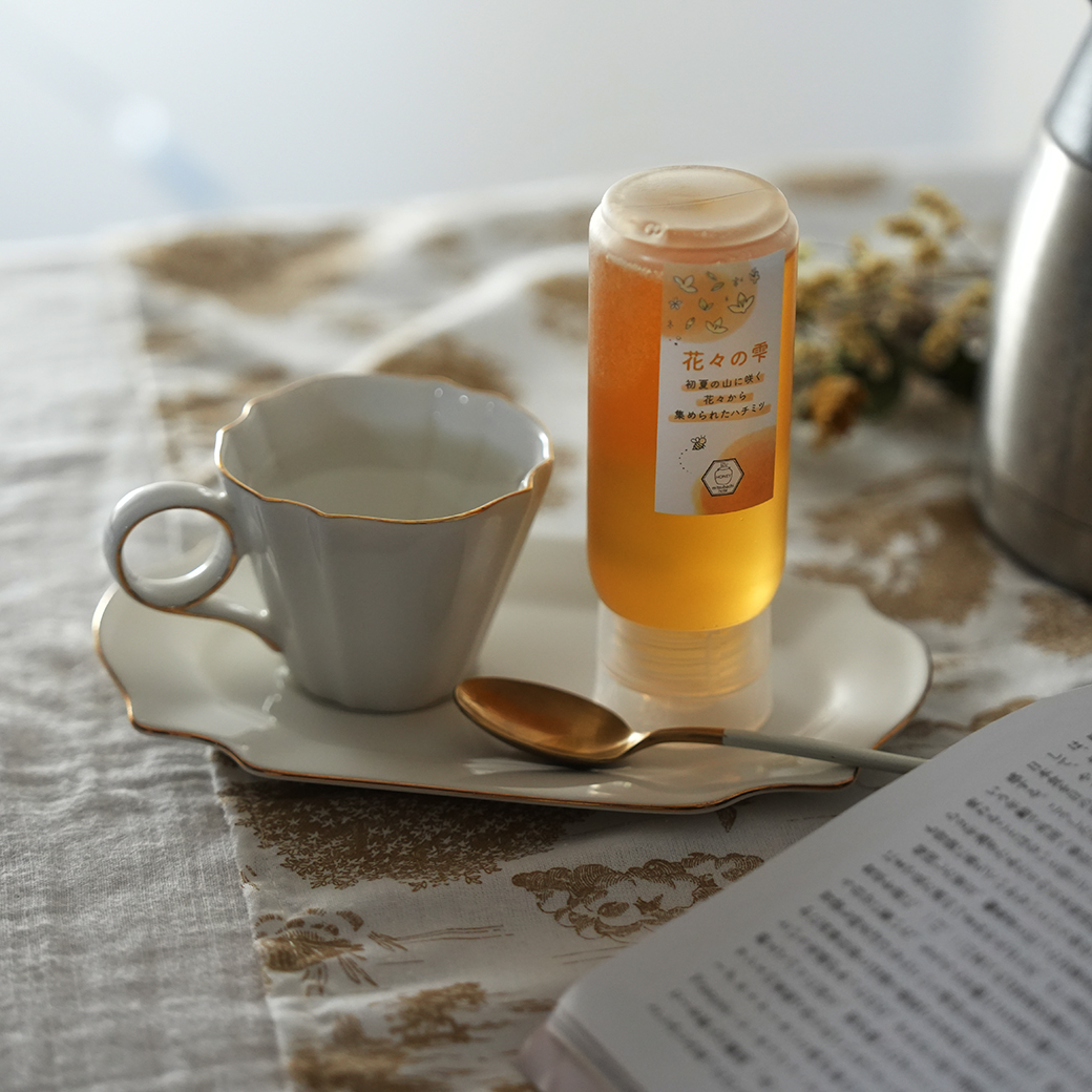 『花々の雫』は、花の香りが優しく広がり、やさしい甘さが口いっぱいに広がるハチミツ。