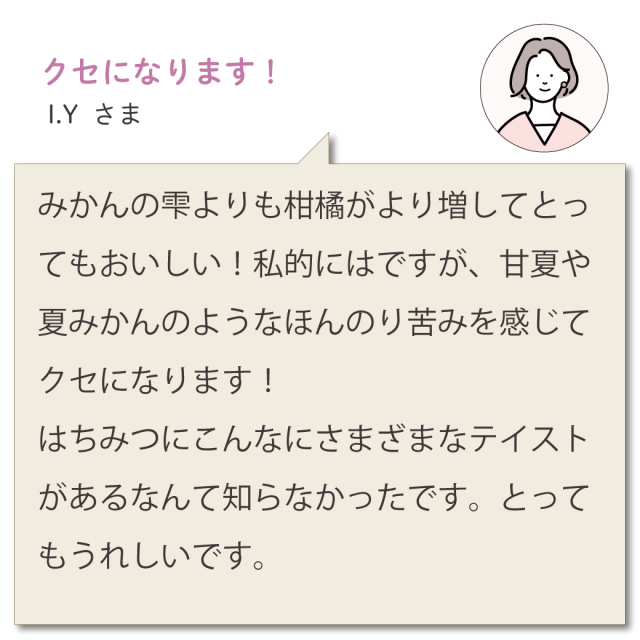 お試しで購入したこちらの商品は、ハチミツとはこういうものなのか!と驚いたくらい液体がさらさら、かつ甘すぎず、少し酸味のあるような味わいで、あっという間に食べきりました。 本来の目的の健康面への影響はまだ感じておりませんが、美味しいので今後も続けられそうです。ほかの種類のものも今後試してみたいと思ってます。 |