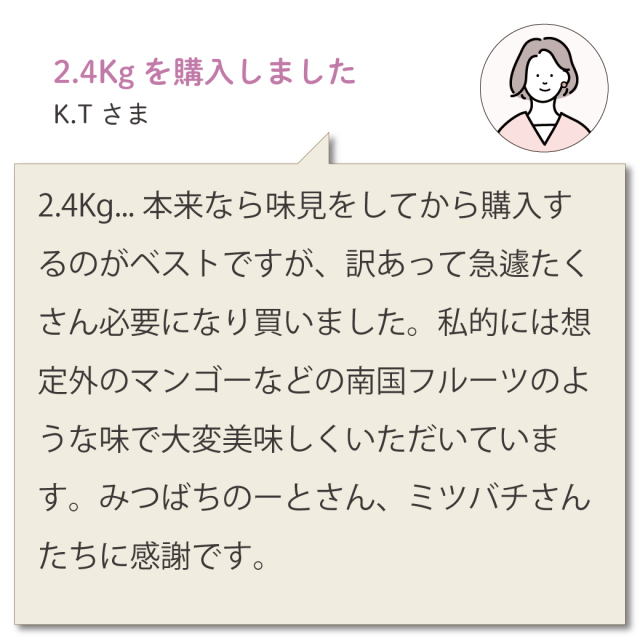 国産ハチミツが身体にいい影響を与えることを知り、一度試してみたいと探したところこちらの商品を知りました。ハチミツは安いものも高いものも色々あり正直どれがいいか分からない状態だったので、国産に特化したハチミツに力を入れて販売されているのが大変気に入っております。