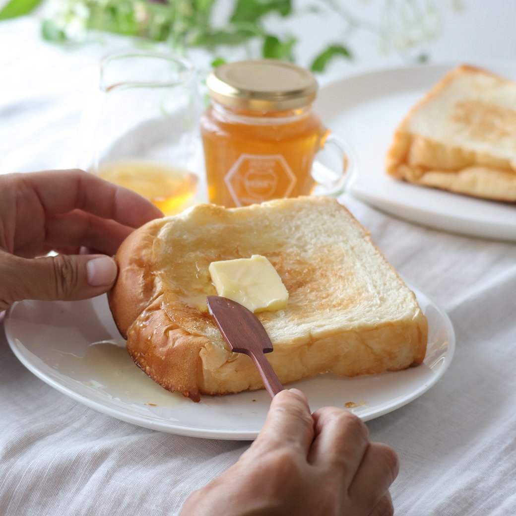 小麦の香ばしさ、バターのコクとハチミツのさらっとした甘さが広がり、一口食べると止まらなくなります。