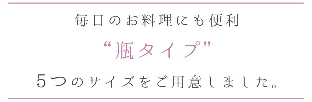 瓶タイプは、2.4kg・1.2kg・600g・300g・120gの5つのサイズの中から、お選びくださいね。