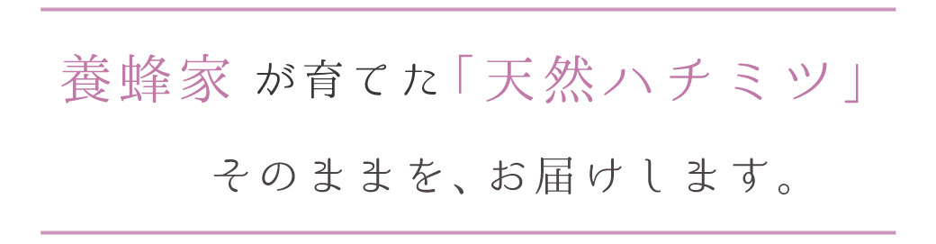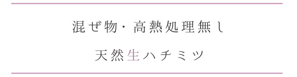 ※「天然ハチミツ」「生ハチミツ」とは、ミツバチの巣箱より採蜜し、濾過しただけの「高熱処理や混ぜ物などの人工を加えないもの」を自社定義としています。