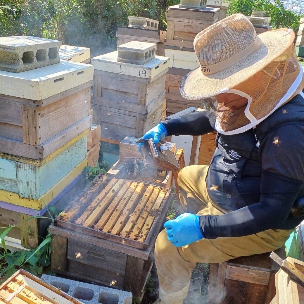 ミツバチの育成からハチミツの製造まで、すべて手作業で行っております。