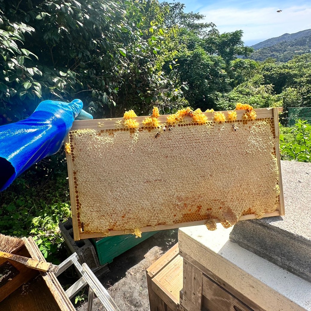 蜜蓋の状況と糖度を確認して、天気もバッチリな日に採蜜をしました!