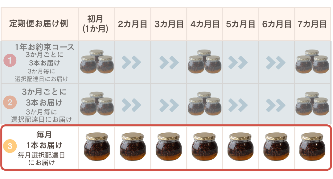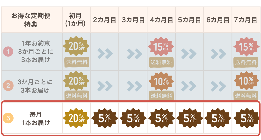 👉 1年続けるたびに、ちょっとしたご褒美が増えていく♪そんな気持ちで続けていただける定期便です