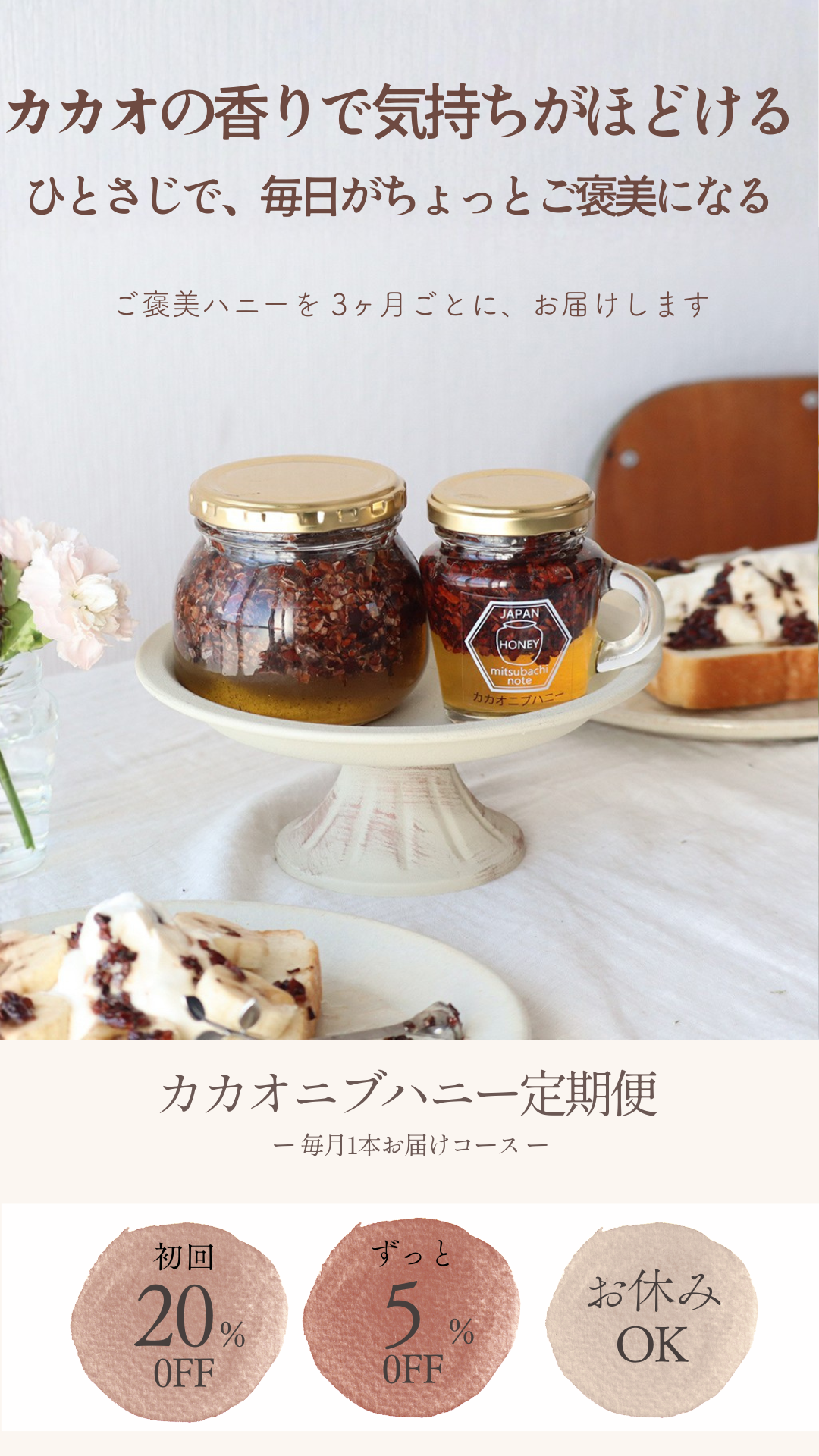 “限定カカオニブハニー”をおトクに続けられる、やさしいコースです。