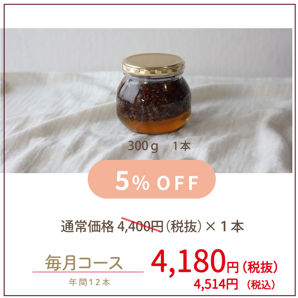毎月、1本のカカオニブハニーをお届けするコースです。
