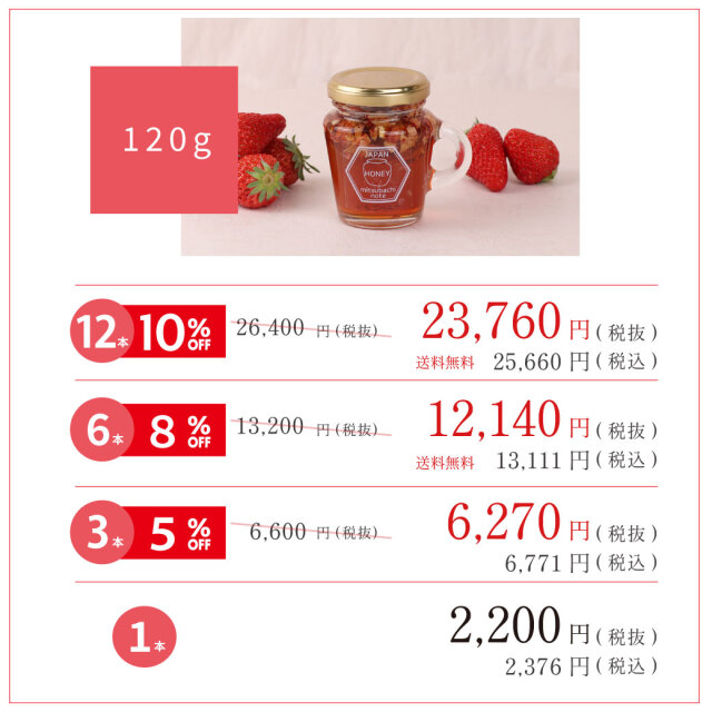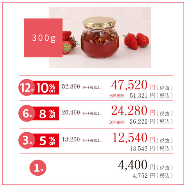 『いちごハニー』は、300g、120gの2サイズをご用意しております。