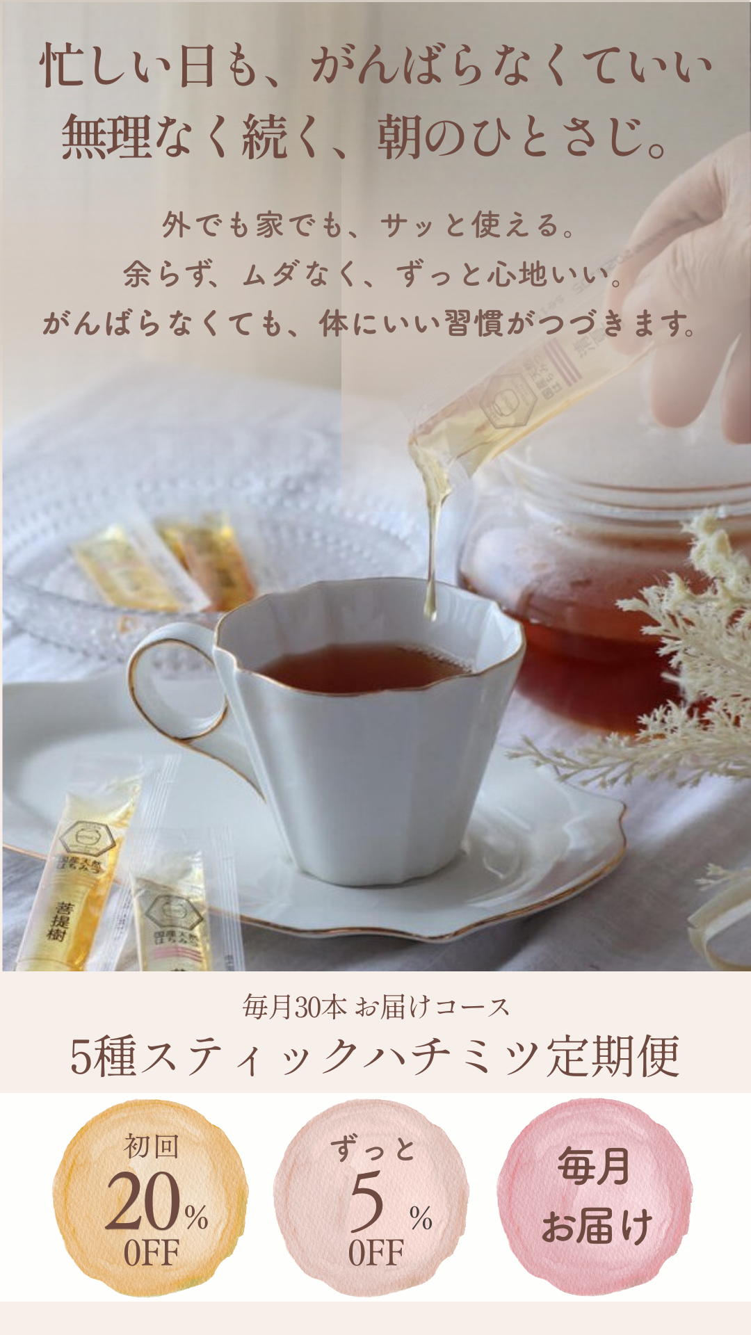 | 商品名 | 【定期便】[毎月お届け]5種スティックハチミツ 30本入 |