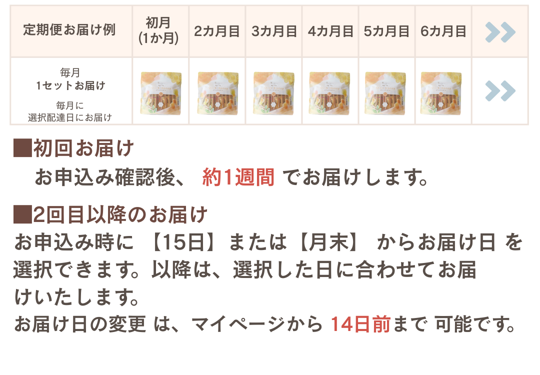 ※ お届けの休止・再開 は、次回お届けの14日前までにお手続きください。