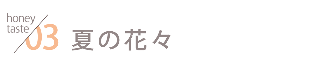 天然生ハチミツは、その収穫の時に咲く花によって、味や香りがそれぞれに違います。
