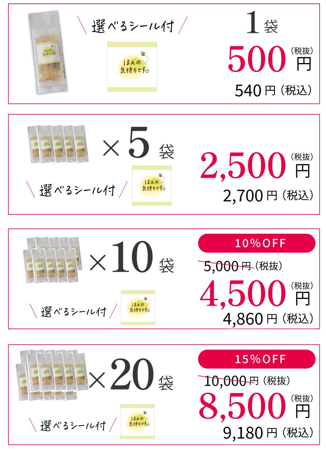 ※シールが不要の場合でも価格に変わりはございません。