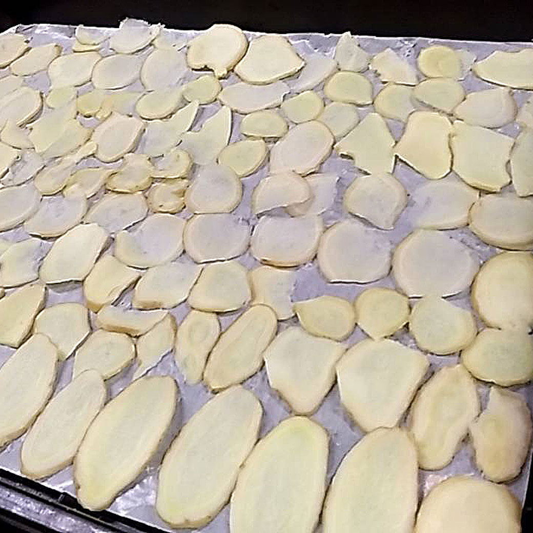 一枚一枚手作業で丹念に「ドライ生姜」に仕上げていただきました。