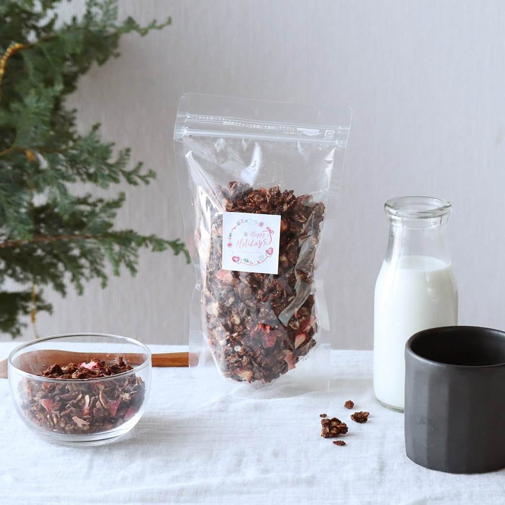 グラノーラ専門店「Fig」さんに特別注文して作ってもらっている「はちみつ屋さんのグラノーラ」に、芳醇な香り広がるたっぷりのココアとカカオニブを使い、ドライ苺を合わせた『クラシックショコラ苺グラノーラ』が再登場。