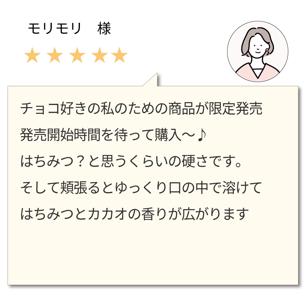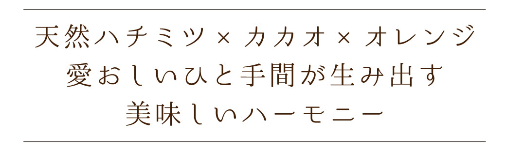 カカオとナッツのコク、オレンジの爽やかな余韻、そしてハチミツの優しい甘みをぜひご堪能くださいね。