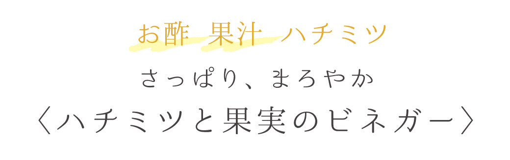 芳醇な香りとまろやかな口あたりで、ハチミツの甘みを味わえる、〈ハチミツと果実のビネガー〉を是非ご堪能くださいね。