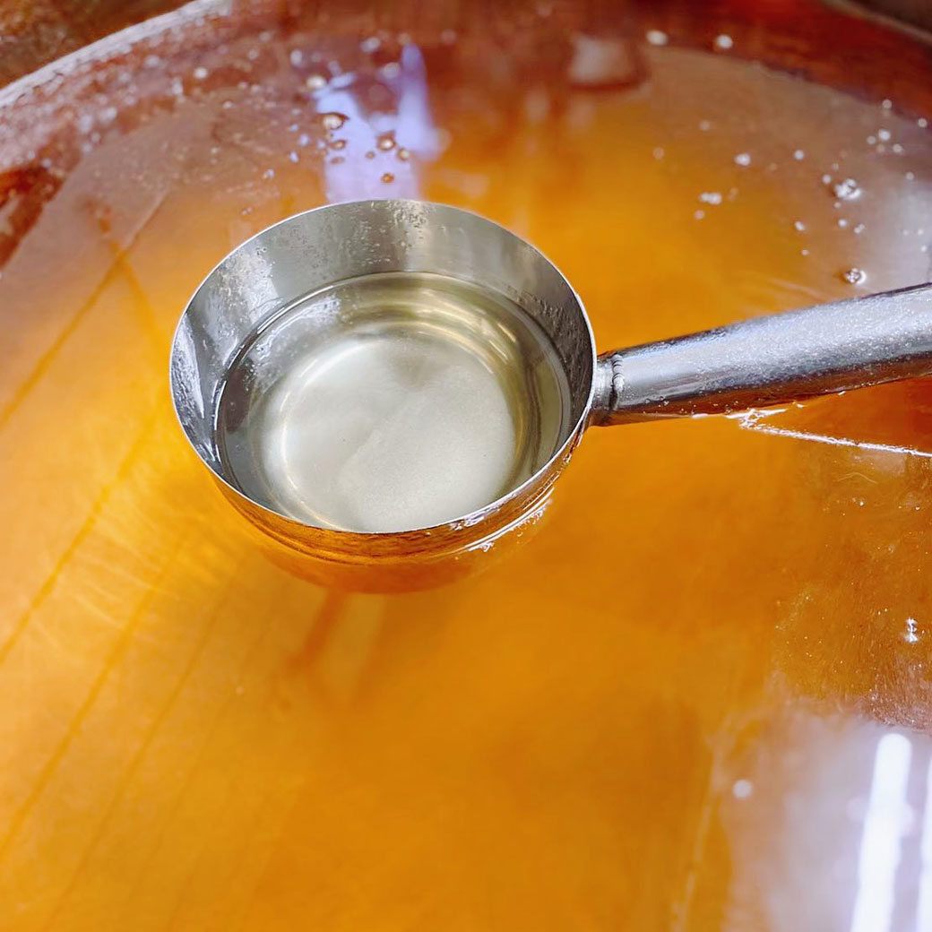 代々伝わるこの秘伝の糖蜜は、まさに五家宝の味の決め手。
