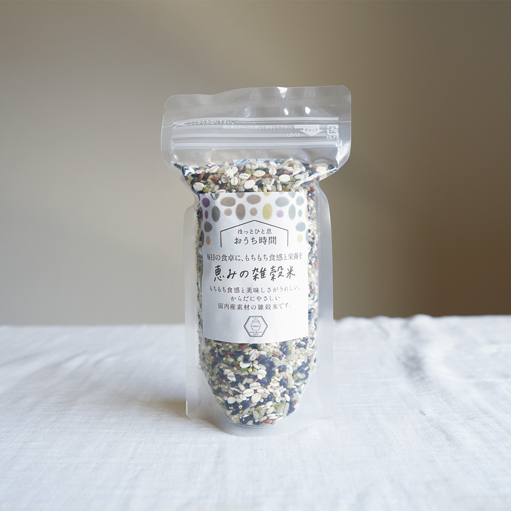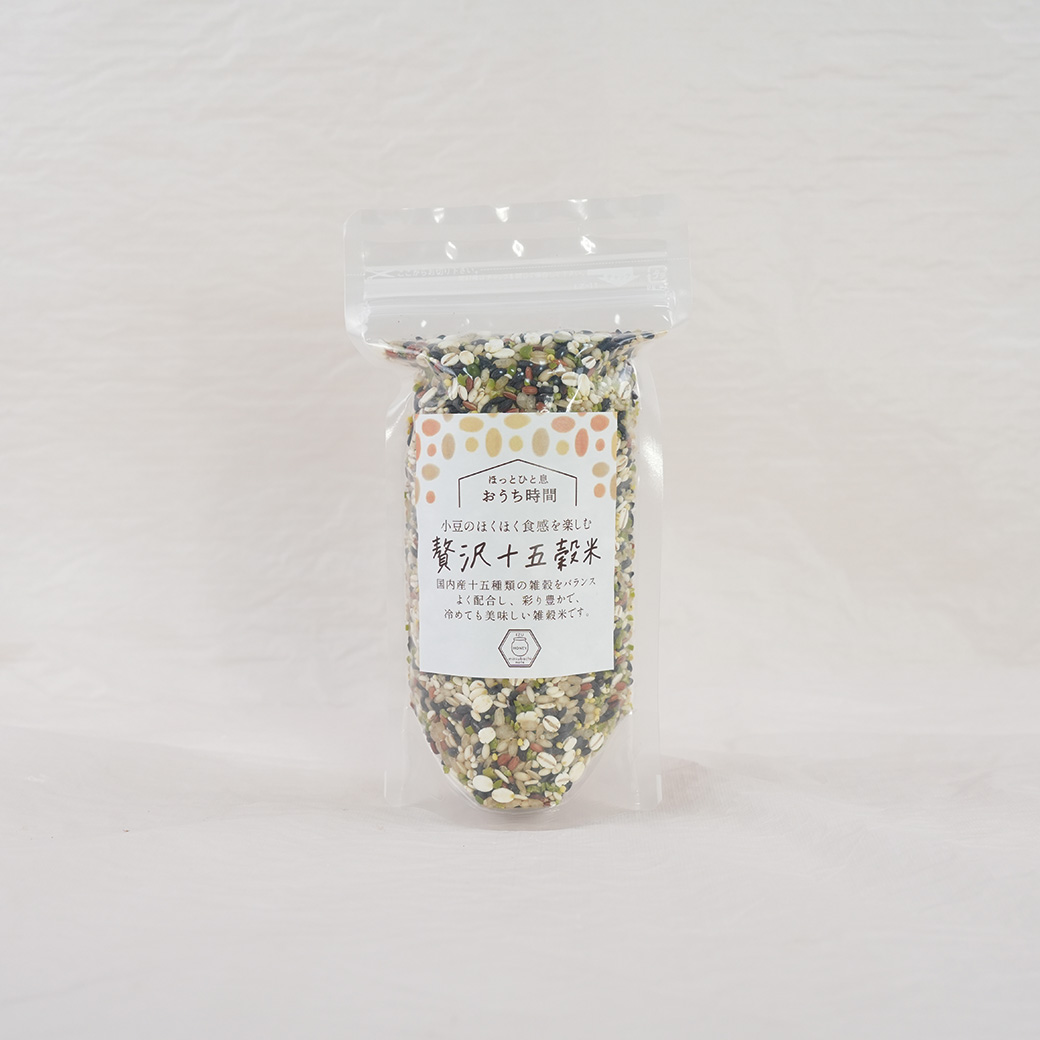 小豆を中心に、黒米・赤米・もち麦など、15種の雑穀をていねいにブレンド。