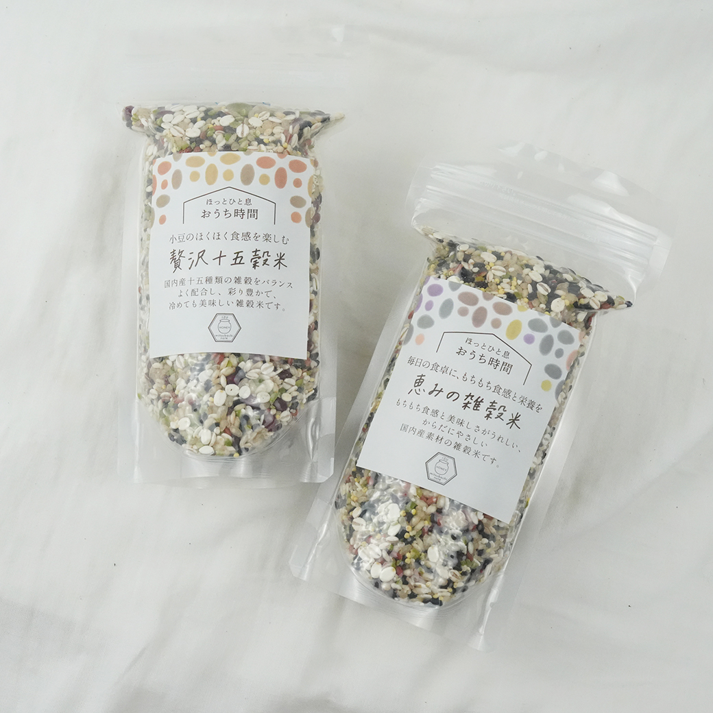 『贅沢十五穀米』と『恵みの穀米』の2種類を販売開始しました。