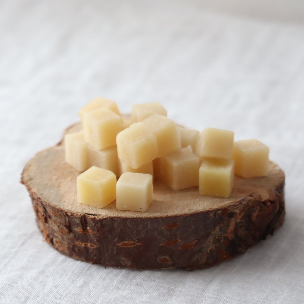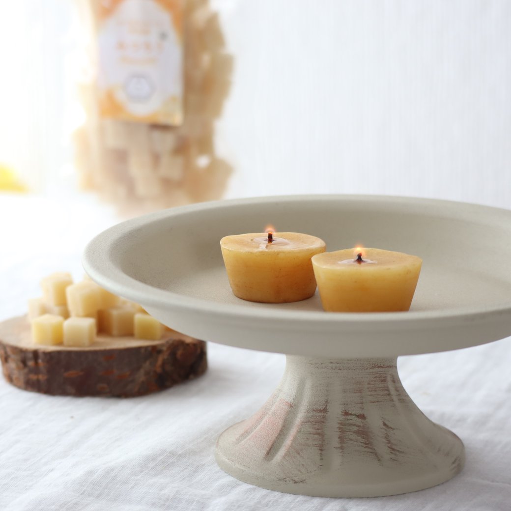 ミツバチの巣の材料である「ろう(蝋)」を、人の手によって精製したものです。