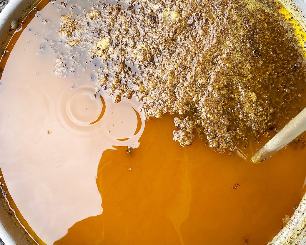 蜜蓋だけでなく、ハチミツを濾す時に出る搾りカスも、余すことなくいただきます。