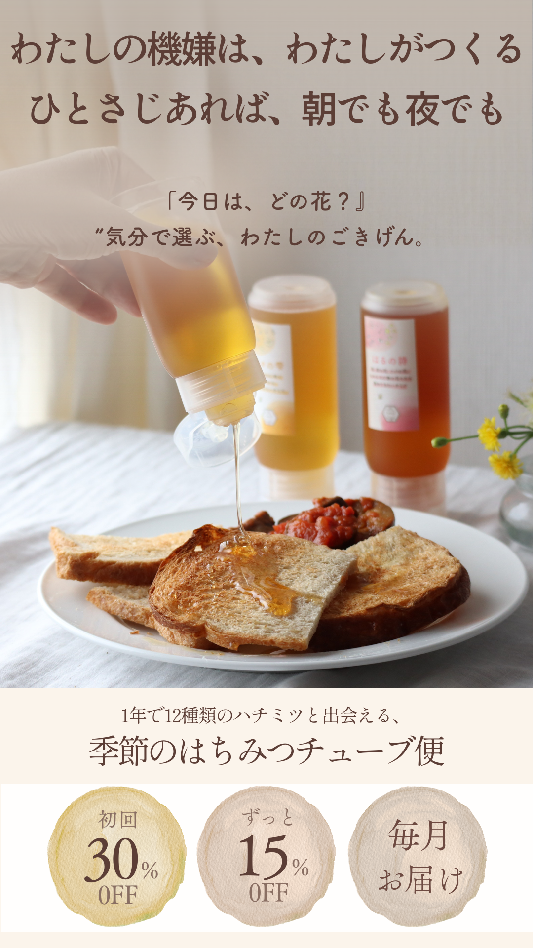「いまの季節にしっくりくる味」や、「この月に使いやすいハチミツ」をお届けできます。