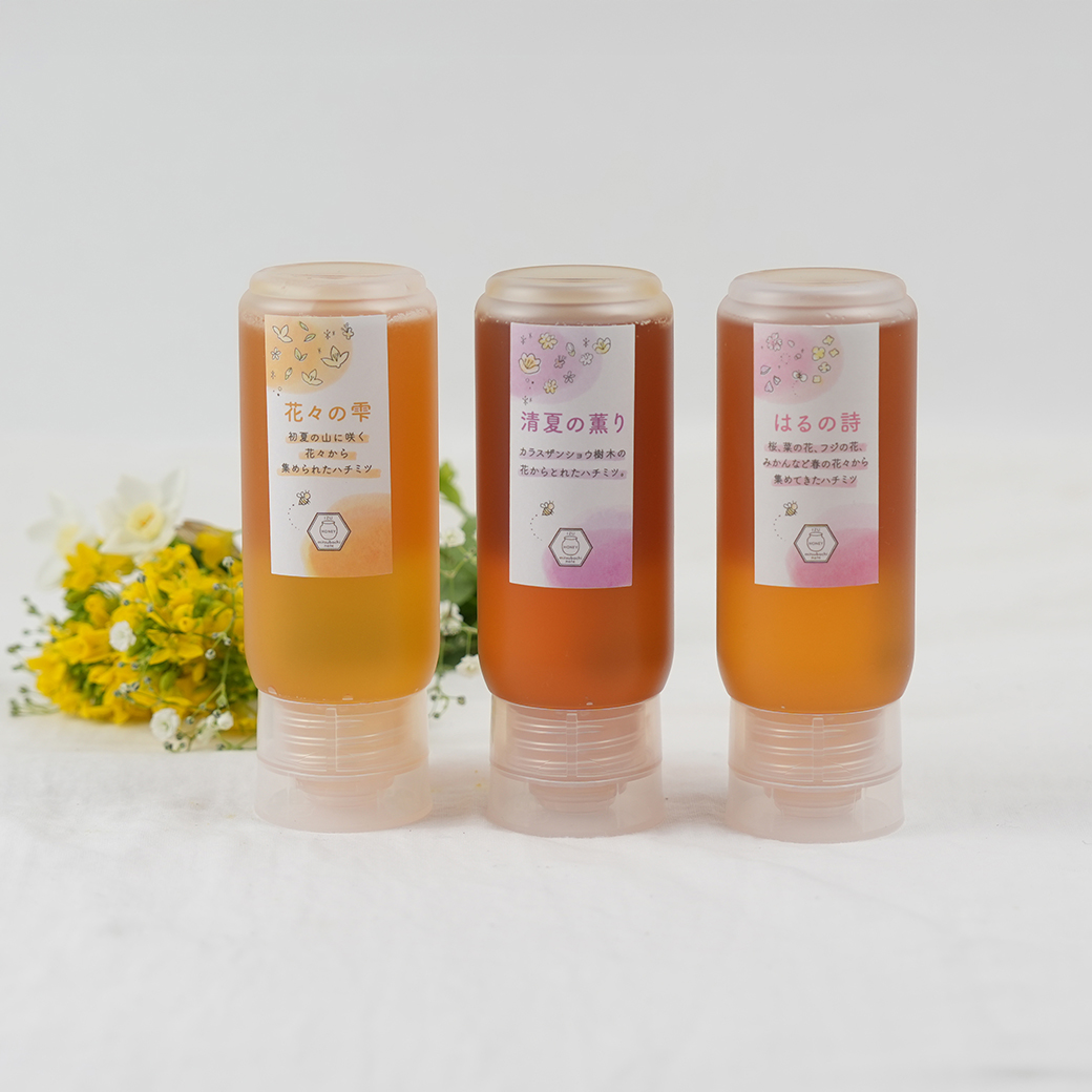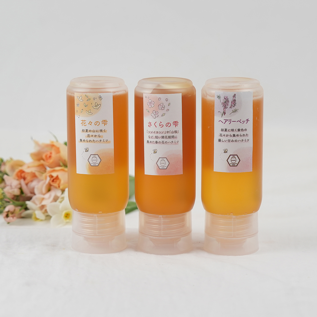 季節ならではの味わいを楽しめる『春のチューブハチミツ3本セット』。