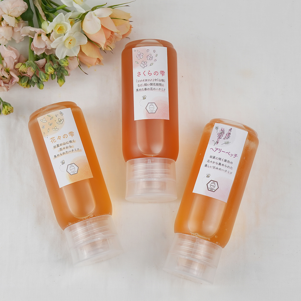 『さくらの雫』は、桜を中心とした春の花々から集めた国産はちみつです。
