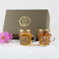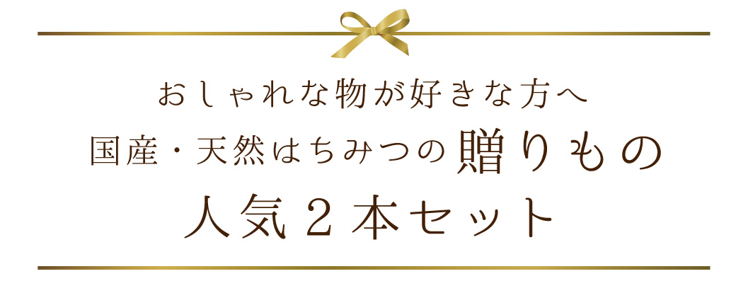 『人気はちみつ2本セット120g』は、国産ハチミツとハチミツ漬けを2本を贈答用化粧箱にセットしてお届けいたします。