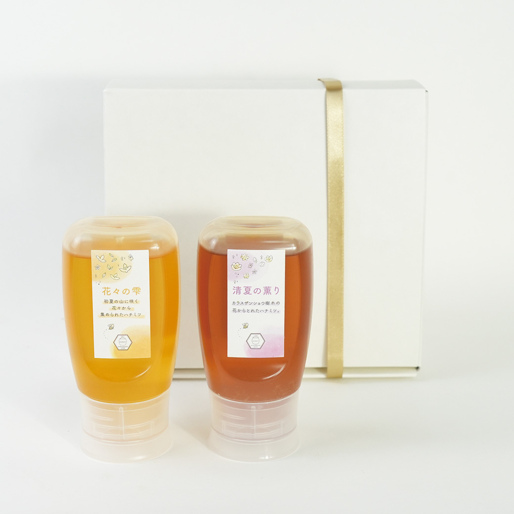 | 商品名 | はちみつ2本セット(花々の雫・清夏の薫り)化粧箱入り |