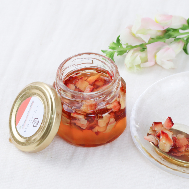 どんな時でも、一口食べるだけで「いちごを食べてる!」と、感じることのできる贅沢なハチミツです。