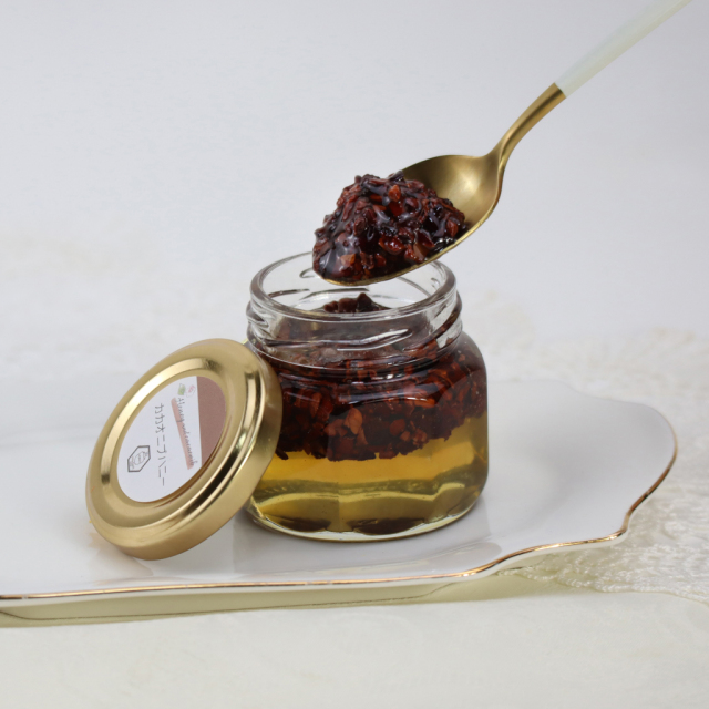 たっぷりの「カカオニブ」を天然ハチミツ「花々の雫」に漬けた『カカオニブハニー』。