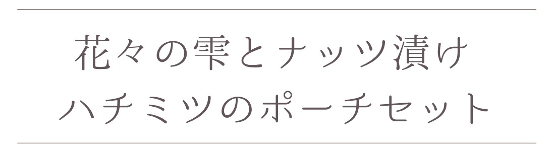 そんなハチミツで、ホッと“わたし時間”を過ごす『花々の雫とナッツ ポーチセット』をご用意しました。