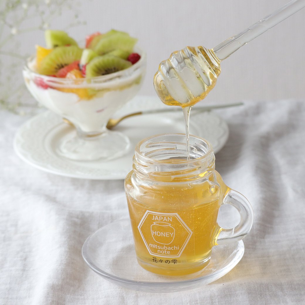 | 栄養成分 (100gあたり推定値) | 花々の雫、5種スティックハチミツ:熱量:328kcal、たんぱく質:0.2g、脂質:0.1g、炭水化物:81.8g、食塩相当量:0.01g とろっとはちみつうめ:熱量:96kcal、蛋白質:1.5g、脂質:0.6g、炭水化物:21.1g、食塩相当量:7.6g |